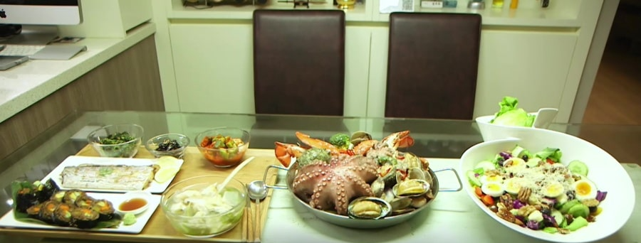 해조류와 버섯 1접시 : 김,미역,다시마 같은 해조류나 버섯을 번갈아가며 먹을 것.칼로리는 낮고 섬유질이 풍부해 다이어트 중 잘 생기는 공복감을 줄여줍니다.