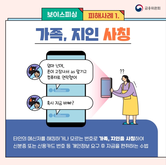많은 사람들이 보이스피싱이나 문자사기 등 각종 사기수법에 대해 어느 정도 알고 있을 테지만 최근에 생긴 말도 안 되는 신종사기수법은 사람들의 눈을 완전히 속이는 수법이라 그 상황에 처하면, 어떻게 하지 못하고 당할 수 밖에 없는 것 같습니다.신종사기수법은 어떤 형태로 진행되고 있는지,막을 수 있는 방법 무엇인지 준비해 보았습니다.특히 주변 지인과 가족에게 공유하여 더이상 피해 입지 않도록 주의하면 좋겠습니다.신종사기수법의 전개는 다음과 같습니다. 2주전 A씨에게 엄마라고 저장된 번호로 전화 한 통이 걸려왔고 걸려온 전화는 실제 A씨가 휴대전화에 번호 저장한 이름이라고 합니다. 별다른 의심없이 전화 받은 그 순간 중년 여성의 흐느끼는 울음소리 들리면서,어떤 남자의 목소리로 지금 엄마를 납치하고 있으니 돈 3천만원 내놓으라고 협박했다고 합니다.