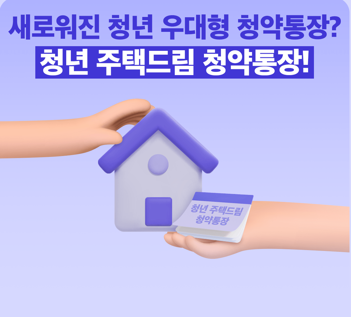 기존에 일반 청약통장 소지하고 있는 사람의 경우 자격요건 갖추고 있다면 은행 지점에 신청하면 은행에서 요건 확인 후 전환되어 지원 받을 수 있게 되며,2월 21일 정부에서 자산형성 지원하기 위해 출시하는 청약통장으로 매월 최소 2만원 부터 최대 100만원 까지 납입가능한 상품입니다.