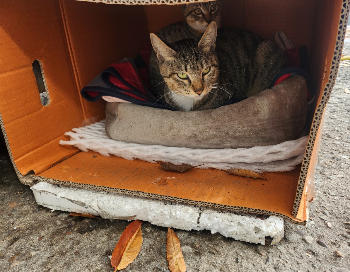 3마리의 아기고양이는 사람들의 손에 안겨 잘키우겠다고 데려가고 어미고양이를 쏙 닮은 아기고양이만 어미고양이 곁에 남아 서로를 지켜주고 있는 모습에서 못난 나무가 고향을 지킨다는 글이 기억될 만큼 서로를 소중하게 생각하며 둥지에 남아있었지.